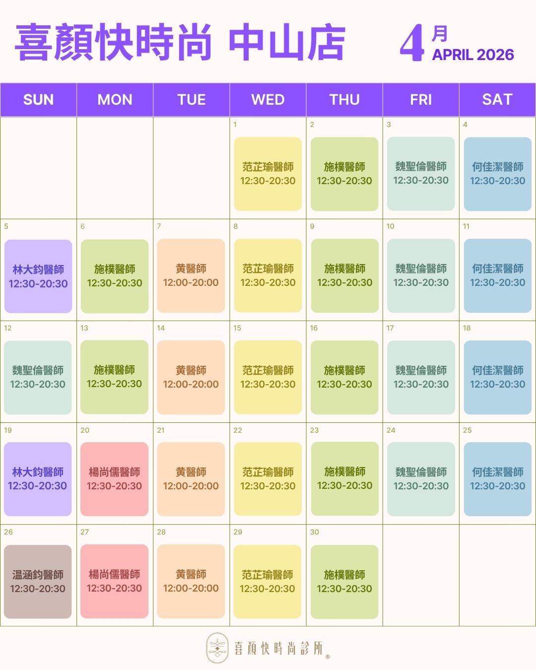 喜顏快時尚診所門診時間