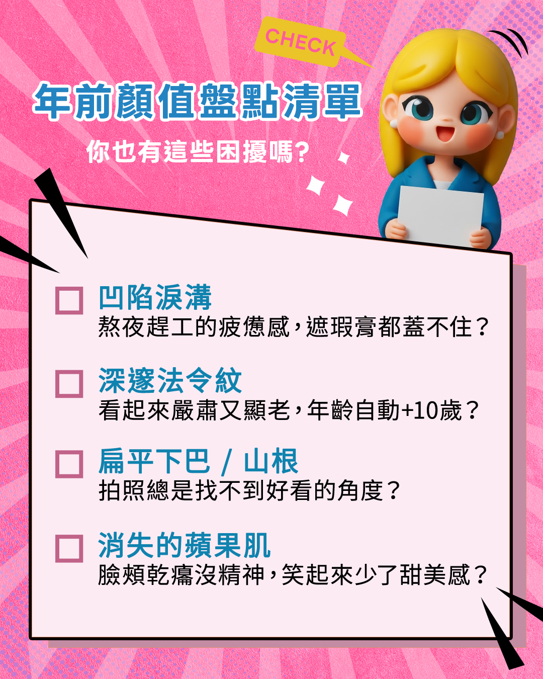 一、 年前顏值盤點清單:你也有這些顯老困擾嗎?