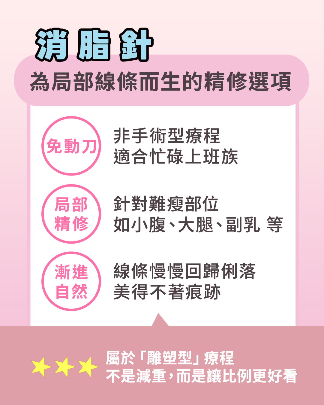 消脂針的定位並非減重療程,而是比例優化療程。