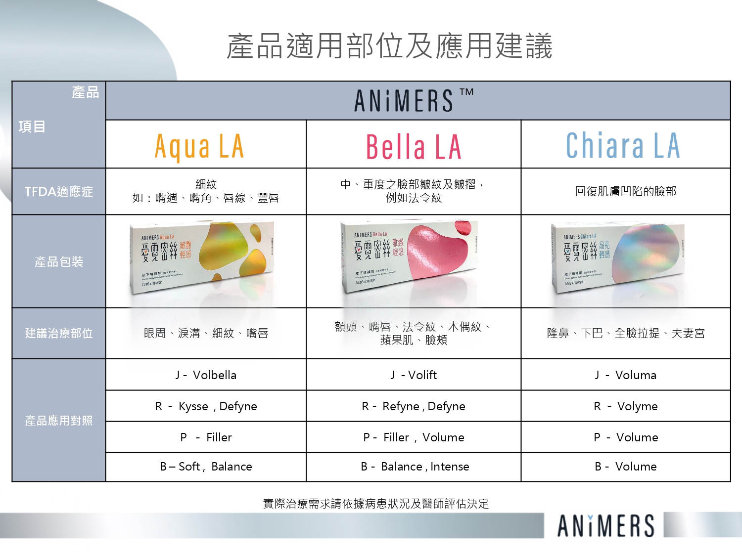愛霓密絲目前提供三種不同彈性劑型,醫師可根據您的骨架支撐需求與皮膚厚薄度,靈活應用於: