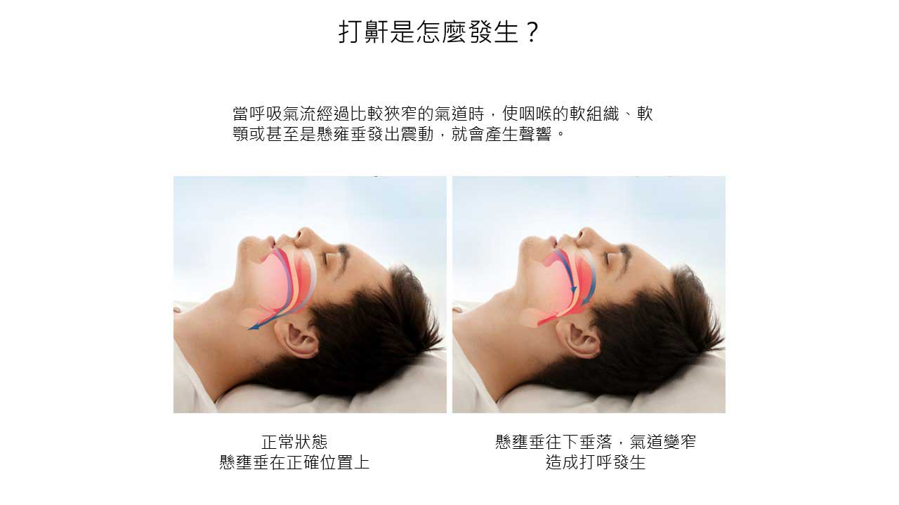 打鼾不只是睡眠習慣,更是呼吸氣道的生理反應。當呼吸氣流經過較為狹窄的氣道時,會帶動咽喉處的軟組織(如軟顎、懸壅垂)產生震動,這種震動引發的聲響就是我們聽到的打鼾聲。