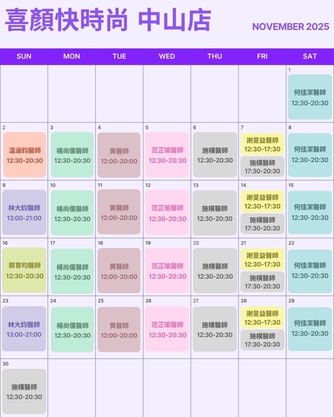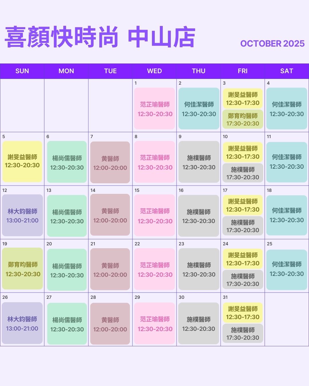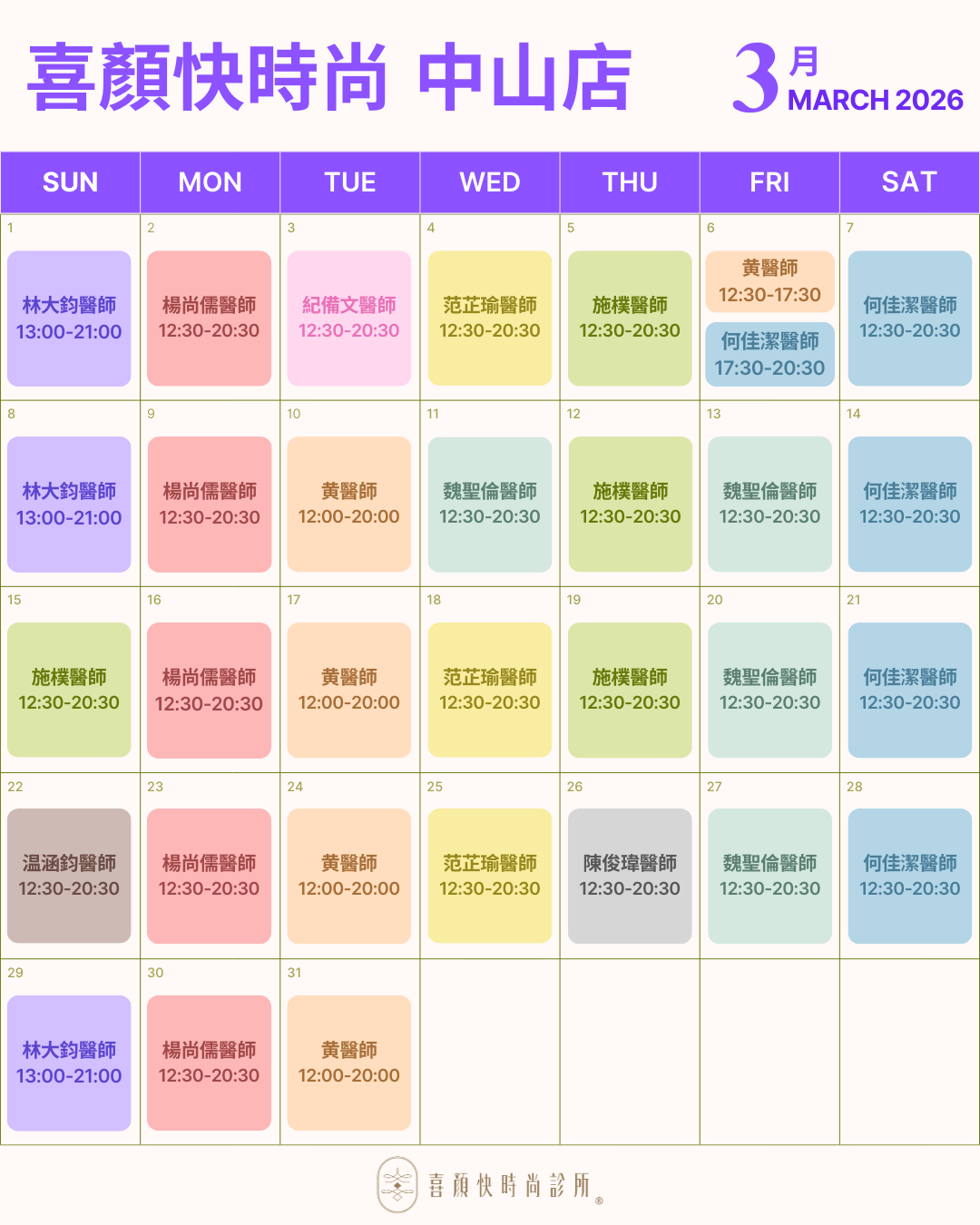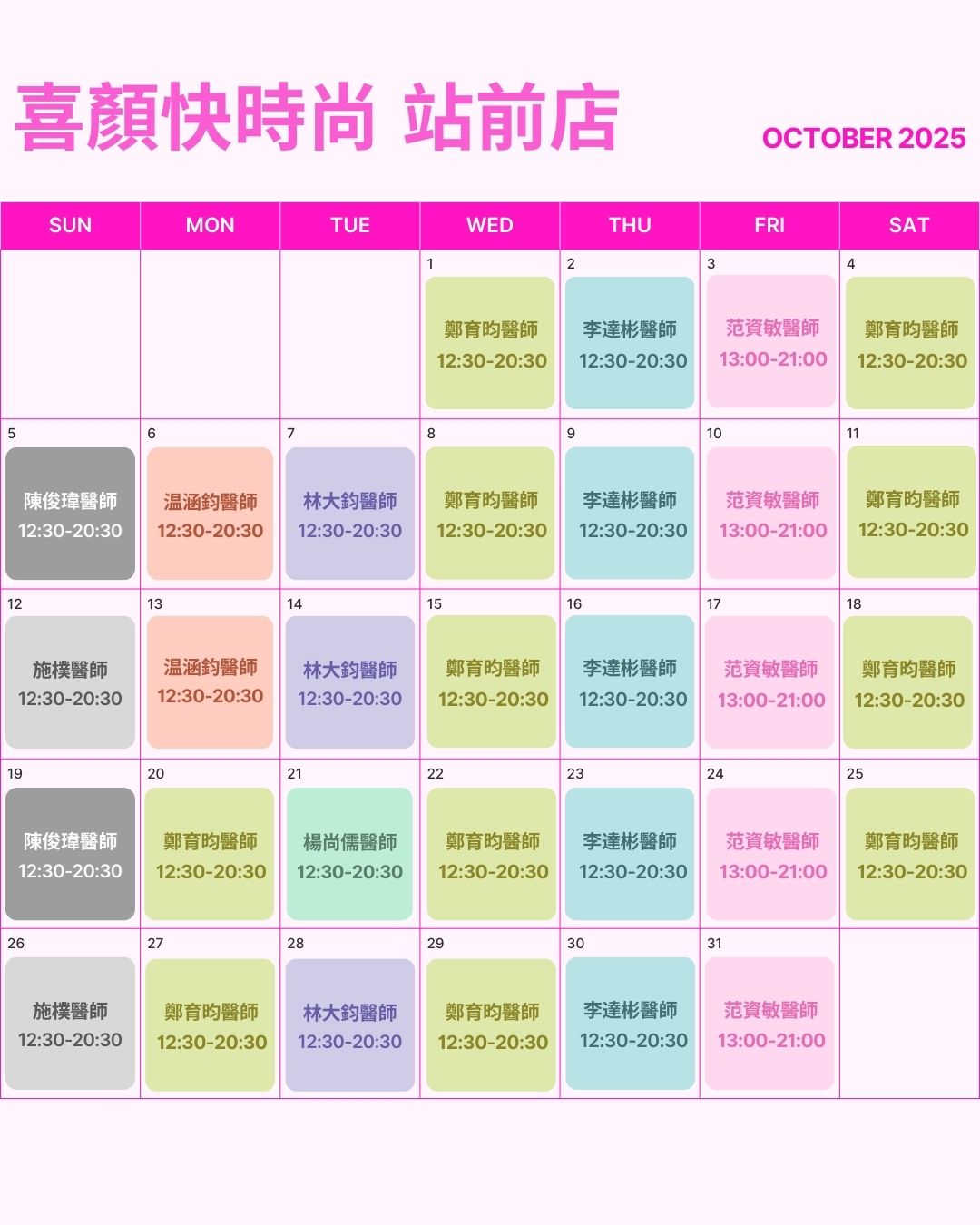 喜顏快時尚診所門診時間