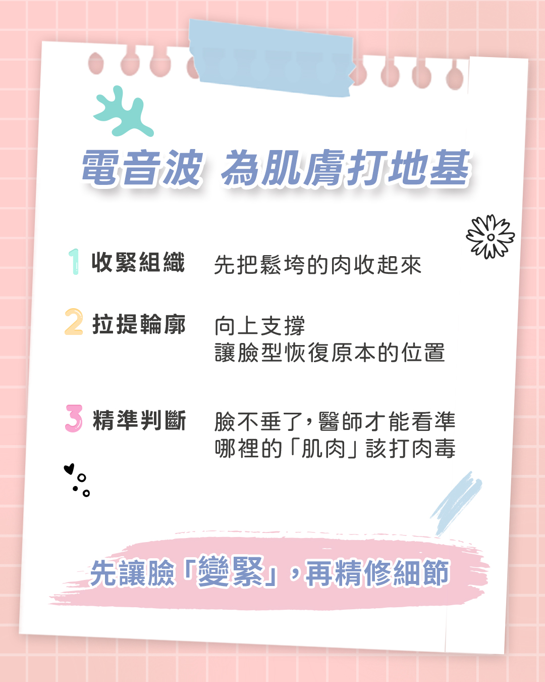 因此,「客製化搭配」成為醫美趨勢。透過專業醫師評估,將電音波與肉毒桿菌分層處理,才能像修復拼圖般,完整補足輪廓缺失。
