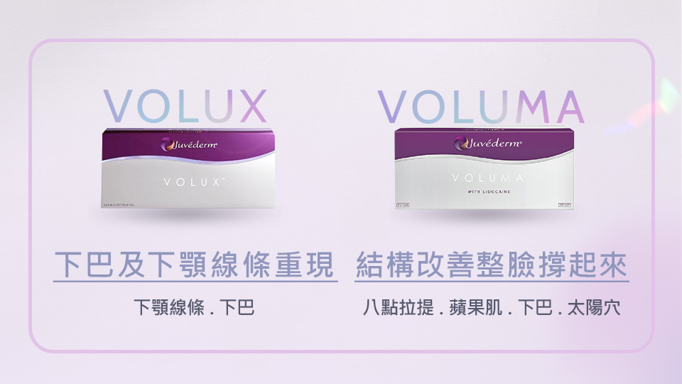【立體重塑】VOLUX / VOLUMA: 強化下巴、下顎線與蘋果肌的深層支撐,將臉型結構重新「撐起來」,解決鬆弛扁塌。