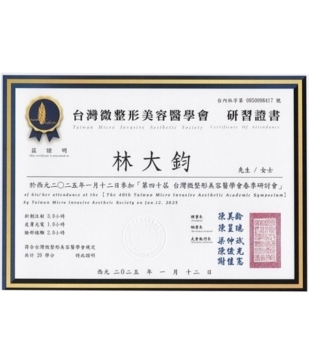 專長: 肉毒桿菌除皺、瘦小臉、瘦小腿、電波緊實拉皮、音波拉提、玻尿酸注射、膠原蛋白增生劑注射、清新微波除狐臭、消脂針消雙下巴、皮秒雷射、淨膚雷射、飛梭雷射、脈衝光、淡化痘疤、除痣、除瘜肉